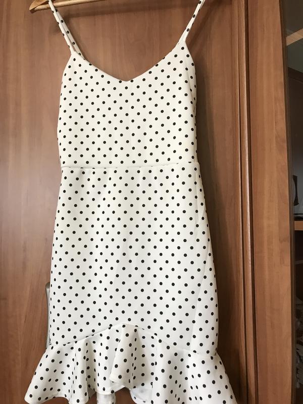Очень красивое платье по фигурке, белое в горошек. Размер :s-m