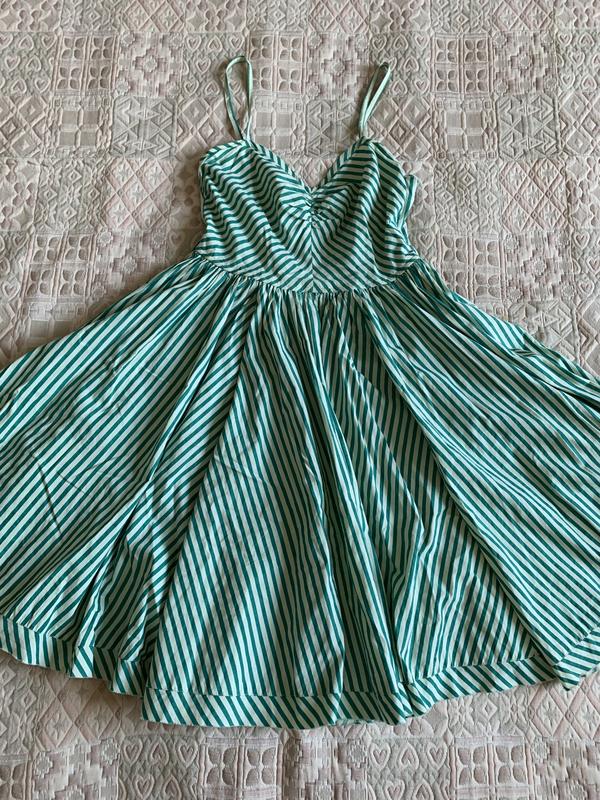 красивый, удобный, легкий сарафан H&M юбка солнце-клеш, бретельки регулируются, есть карманы в боковых швах юбки. Застежка сбоку- молния. Размер S-M Замеры: грудь-39. талия- 37. длина от бретелек- 104 Состав: 100% хлопок