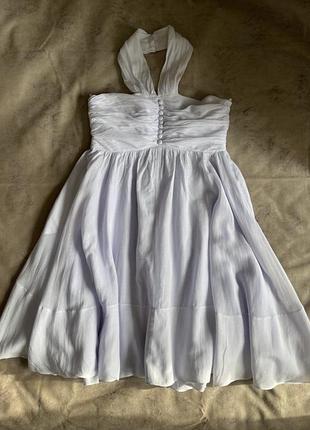 Платье с открытыми плечами и юбкой солнце-клеш. Состав ткани 67% сотон и 33% шелк. Имеет карманы. Очень легкое, не смотря на большой объем ткани. Цвет свечло фиолетовый. Можно надевать как праздничное так и ежедневное. Размер S