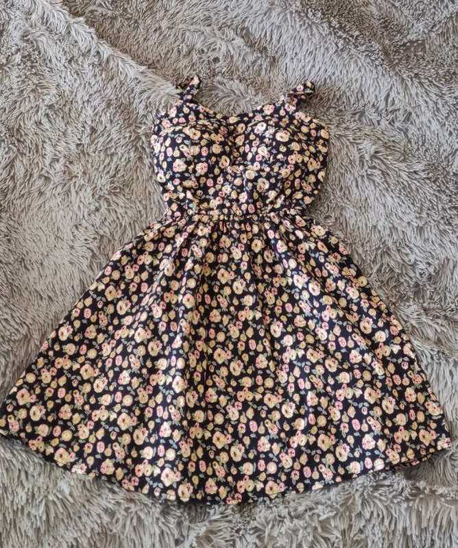 Мини-сарафан на молнии сбоку, легкий летний. Имеет вшитые чашечки, что очень круто летом, можно одевать без топа. Лямки регулируются. Для моего роста уже коротковат. С удовольствием носила два сезона, вид свой совсем не потерял.