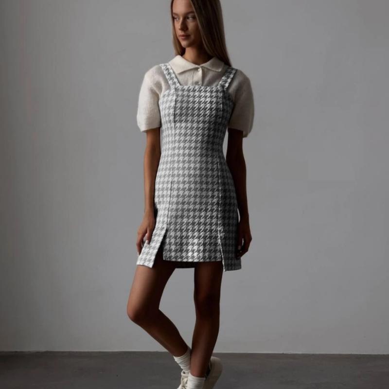 Сарафан РОЗПРОДАЖ! Мод. 397 ▫ Ткань: твид шерсть Турция ▫ Цвет: черный, бежевый ▫ Размер: 42-44, 44-46 новая Цена: 450 грн Шален стильный твидовый сарафан. Актуальная модель, с которой можно создать множество крутых образов. ➖ Замеры: Длина изделия по боковому шву 63 см Длина от плеча 85 см ОГ-84-92 см ОТ-66-74 см ОБ-84-96 см код1915(тер)