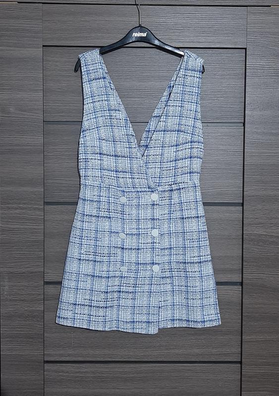 Стильный сарафан из твида голубого цвета. Размер S.Отличное состояние замеры по запросу.