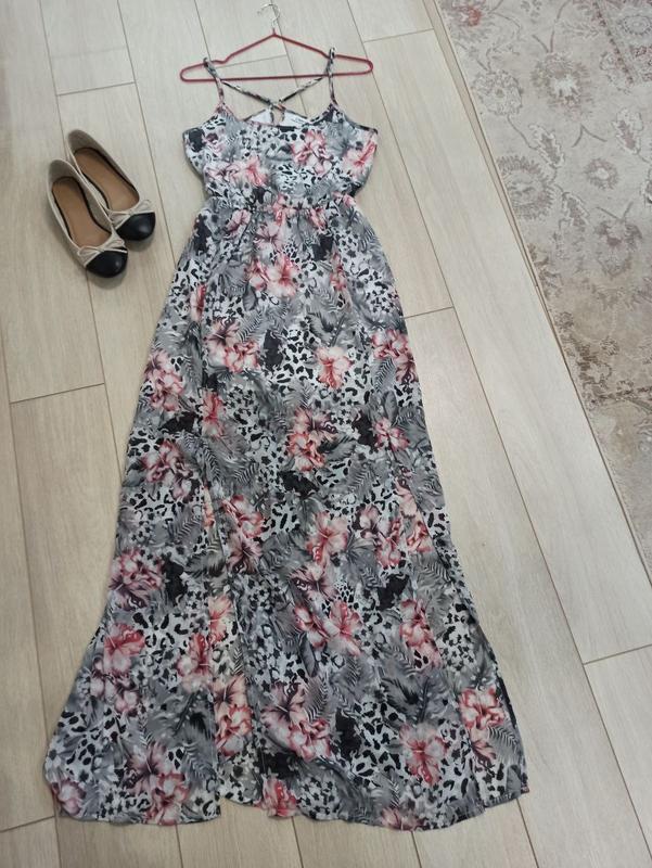 Сарафан макси с двумя разрезами впереди, размер С-М, полиэстер. Замеры: ОГ 84, ОТ от 62-80 (резинка), ОБ 108, длина 143