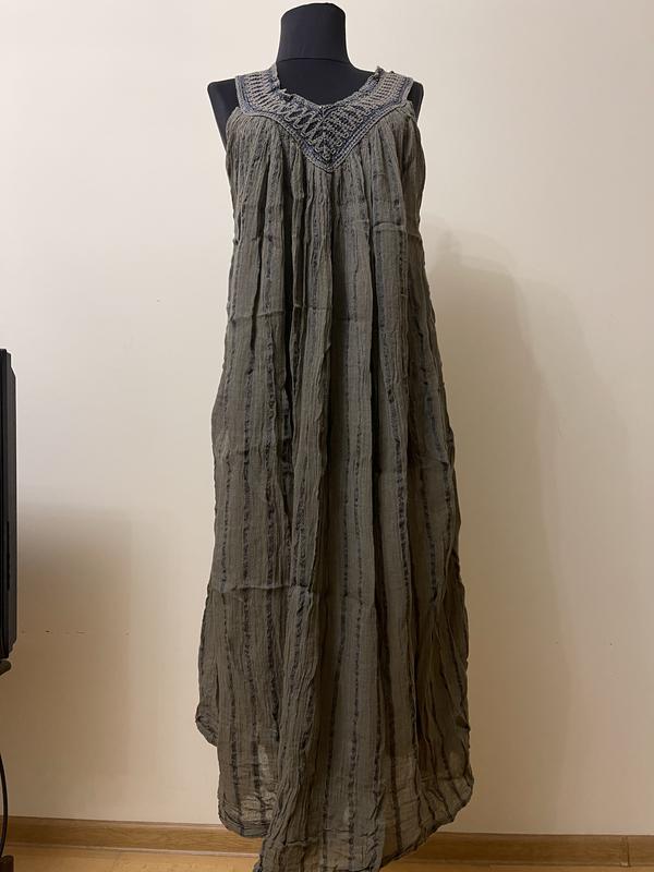 Платье - сарафан цвета хаки. Греция. Коттон 80 %, район 20%. ПОГ 66 см, ПОС 116 см, длина 118 см. Стан идеален, без дефектов.