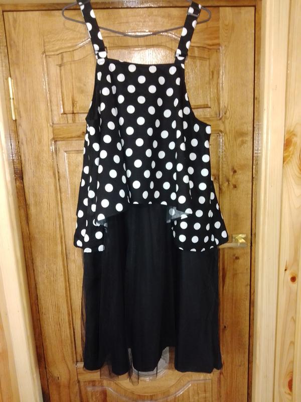 Сарафан ярусний. зверху бавовна, а внизу фатин. Дуже гарно виглядає. Пог від пройти до пройти 63. Вільного крою, брителі регулюються. довжина самого сарафана без бритель 93 + фатин 10 см.