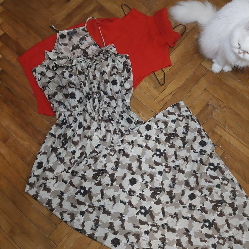 завжди актуальний анімалістичний принт . легкий сарафан на літо , пояс на резинці стан ідеальний . ширина в грудях 48 см , талія 37 см і плюс тягнеться , стегна 55 див. ідеально на розмір S.M.продаю власні речі з власного гардеробу за символічну ціну