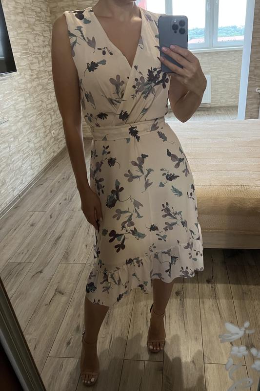 Дуже ніжний сарафан з шифону з квітковим принтом. Є підкладка. Довжина 107 см, пахви 44 см, ПОТ 39 см. На фото одягнутий на параметри 93-69-93, зріст 167 см (на мене завеликий) БЕЗ ТОРГУ. До оформлення замовлення через шафу, будь ласка, попередньо напишіть мені для уточнення наявності та деталей