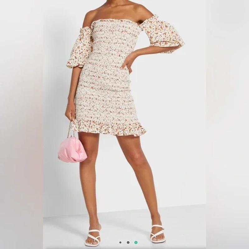 Стильный сарафан жатка с открытыми плечами от Topshop. Рукава фонарики на резинке. Стан нового. длина 68 см ПОГ 37 см ПОТ 31 см ПОБ 37 см