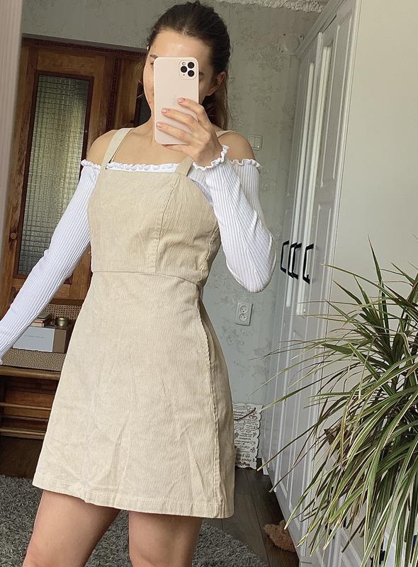 Актуальный сарафан. Цвет беж. Размер указанный m, одетый на s. Не слишком короткий. Стан нового !