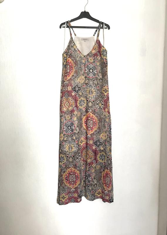 Сарафан на бретелях с подкладкой, высокими разрезами по бокам, на молнии в боковом шве, есть грудные вытачки Замеры: пог 42, талия 44, бёдра 52, длинна 129