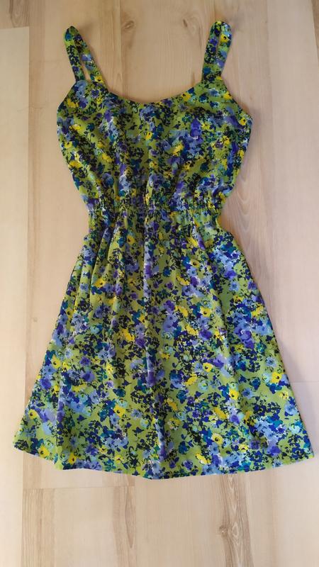 Яскравий сарафанчик.Пог-46,Пот-33(на резинці),довжина-89.Стан нового
