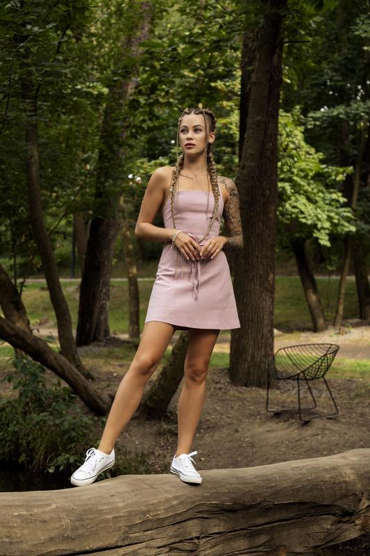 👀Артикул: 📌Рожевий: #1629727266 - Материал: лен; - состав ткани: лен 80% + вискоза 20%; - сарафан на двух бретельках, которые являются основой для корсета; - завязывается сзади; - Карманы отсутствуют; - юбка имеет свободный крой; – Сзади на юбке есть молния.