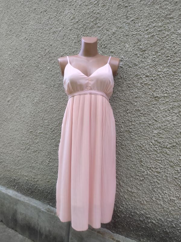 На подкладке, бретельки регулируются, талия завышена. Застегивается на молнию сбоку. Цвет персиковый (на последних фото). Материал: полиэстер. Размер 36. Замеры: пог 42см, пот 36см, длина с бретелями 100см.