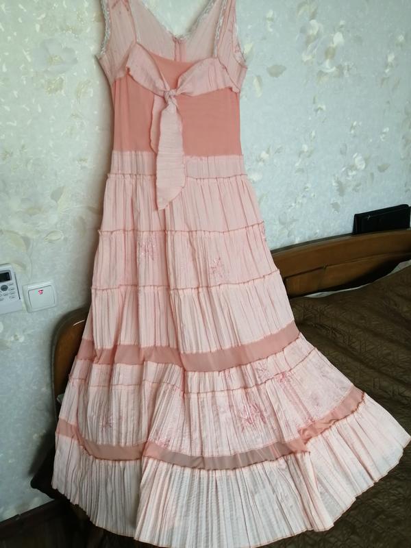 Легкий, персикового цвета сарафан в идеальном состоянии. Жатка хлопок с сеткой. Зад дольше перед.