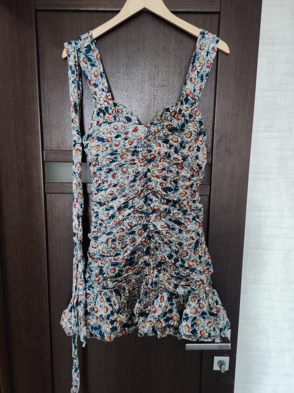 Очень красивый короткий сарафан, который за счет складок скроет все недостатки фигуры. материал 100% хлопок, размер М. фото и замеры без проблем.