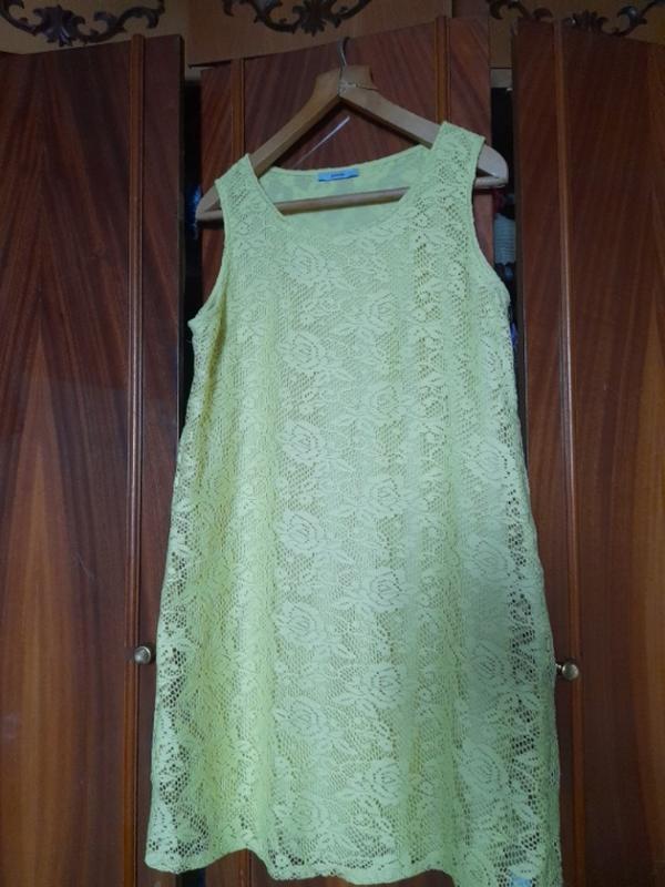 Ярко желтого лимонного цвета. на фото он бледнее. дефектов нет. ткань тянется.