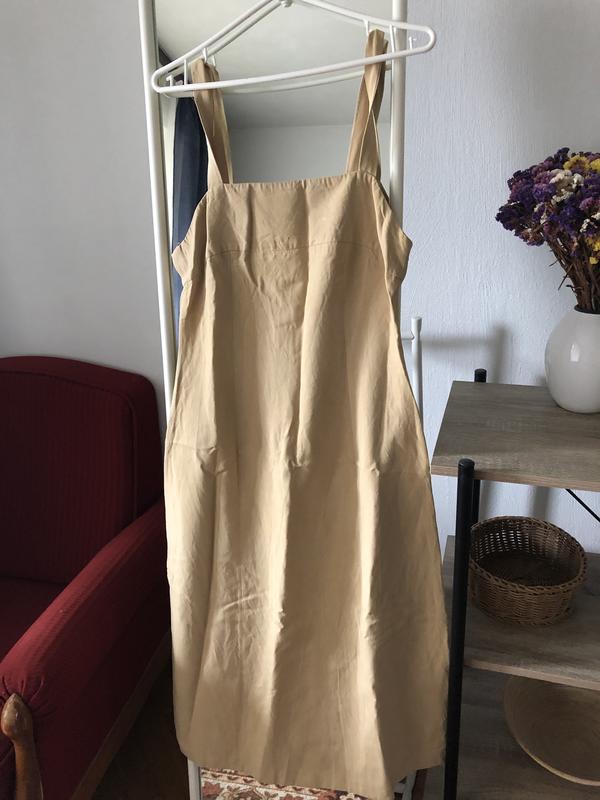 Сарафан Promod. На спине застежка молния. Вискоза, лен. Размер указан L