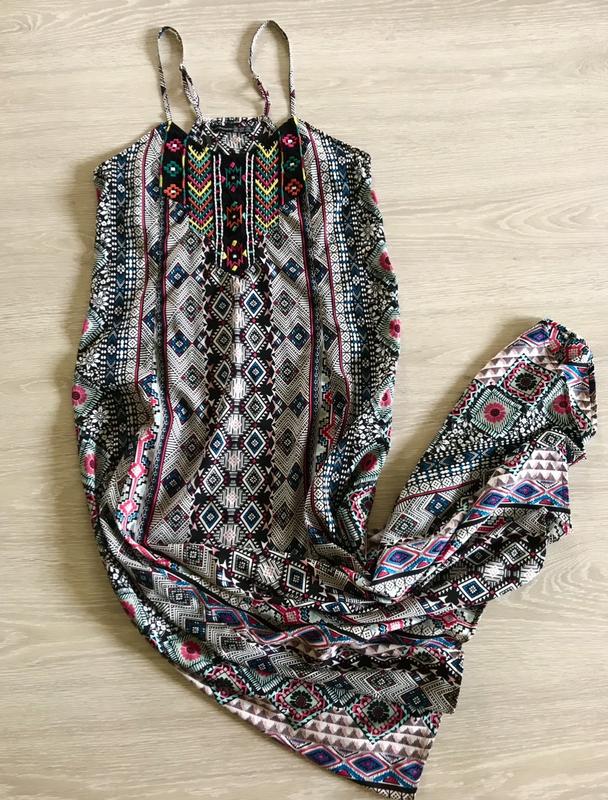 Класнючий сарафан-вишиванка в стані нової речі. Розмір 10/38. Фото на моделі з розміром S, іде на М. Довжина 136 см (регулюється брітелями). ПОГ 44 см. Поліестер.