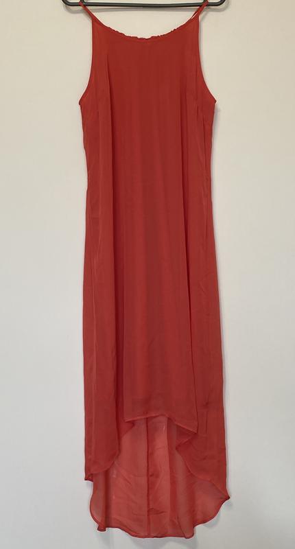 Длинный сарафан Old Navy. На подкладке. Тонкие регулируемые бретели сзади на завязке. Сзади длиннее, спереди короче. Длина по спине 130 см, ПОГ 47 см, ПОТ 48 см, ПОБ 58 см. Перед короче на 30 см. Цвет: коралл Состав: 100% полиэстер Машинная стирка Наложенным только НП по предоплате 120 грн.