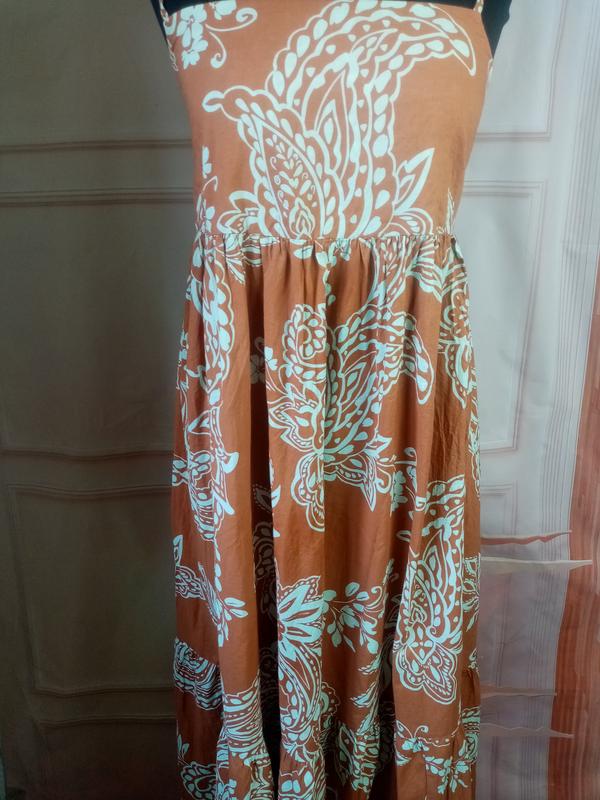 Сарафан из хлопка в идеальном состоянии дефектов отсутствует Приемный на ощупь Ног 40см Нот40см Ноб 100см Длина по спине 107см. Длина брители40см она регулируется
