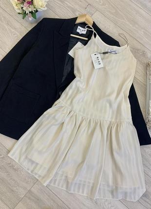 Сарафанчик від бренду NA-KD Розмір S Класнючий сарафан вільного крою у смужку на тонких бретелях має підклад не просвічує Молочного кольору