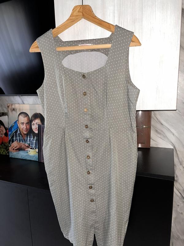 на наборе этого сарафана написано, 54, но на самом деле этот сарафан на размер 48-50. ткань-коттон, цвет хаки в мелком горох. одевала три раза, состояние идеальное, очень приятное к телу