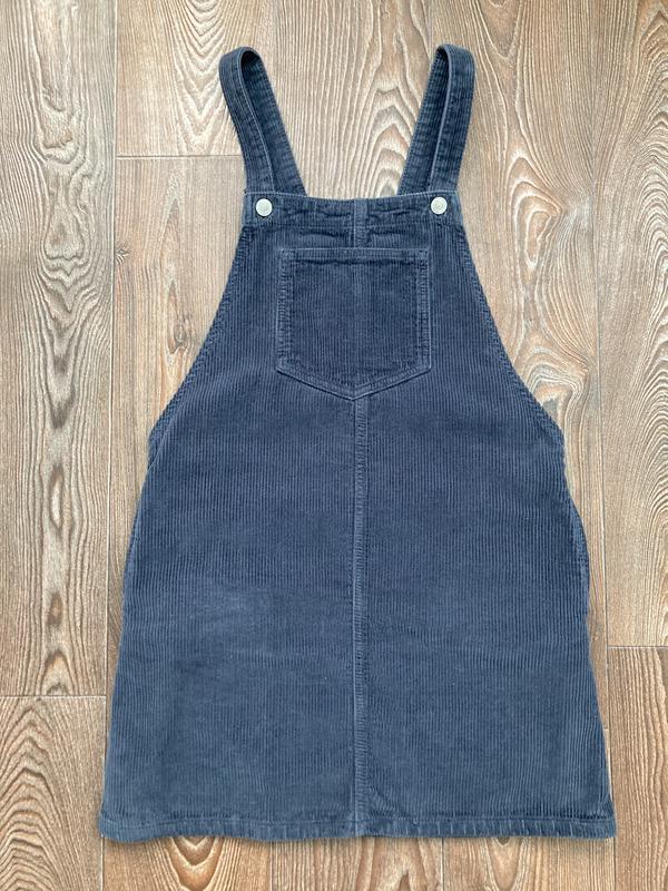 Жіночий вельветовий сарафан в рубчик темно синього кольору Topshop MOTO XS S , EURO 36 , US 4 , UK 8 Вживаний, стан дуже добрий. Довжина від верху бретелі до низу спереду (в застібнутому стані) - 81 Ширина талії - 42 Ширина по низу - 50 Довжина по бічному шву -38 Є кишені в бокових швах