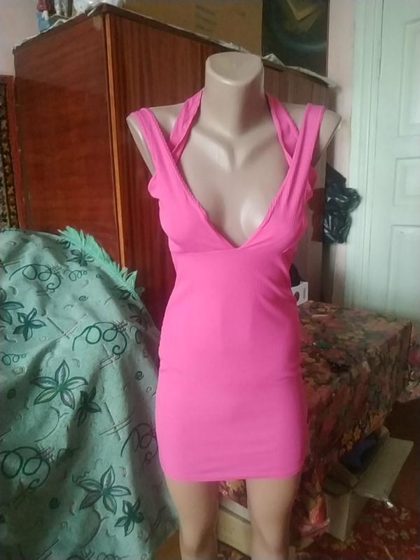 очень красивое розовое платье рубчик с V-образным вырезом.Ткань ластиковая,хорошо тянется и отлично смотрится.Размер с,м. описание состояние отличное длина 79 ширина чашки 17 ширина бедер 40