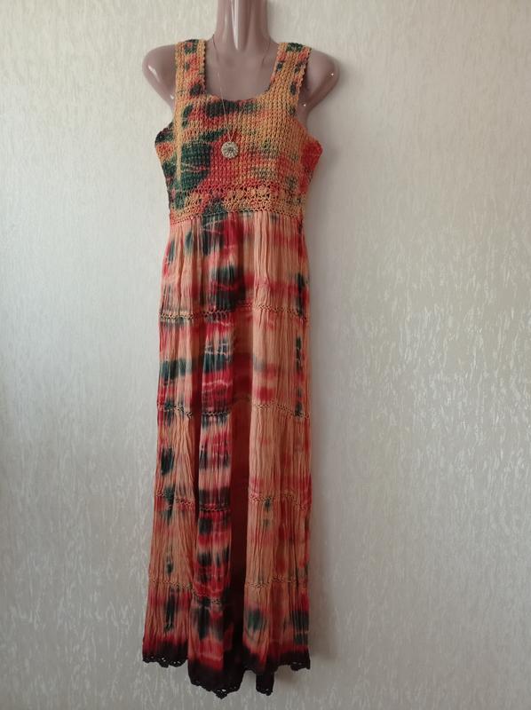 Яскрава довга сукня із в'язкою, сарафан вільного крою