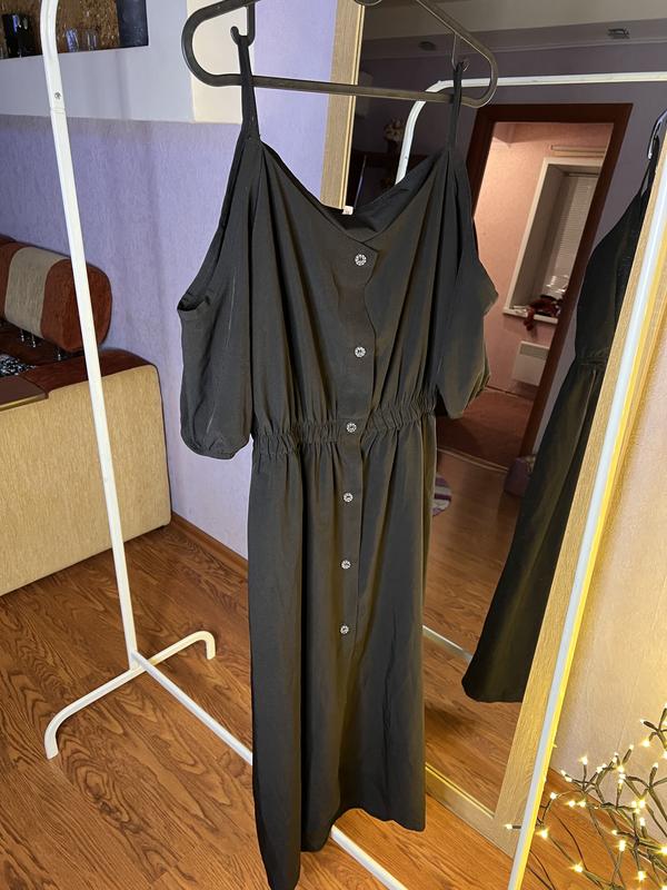 Платье платье сарафан черная на пуговицах легкое летнее с открытыми плечами вискоза идеаль...