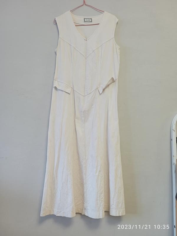 літній сарафан з льону. (льон не прасують! має бути трішки зім'ятий!) дуже красивий. продаю, бо потовстіла, так би й носила, бо він шикарний. довжина біля 112 см, ширина в грудях біля 44 (пог) +-, по стегнах біля 48 (пос). є малюсентка плямка, її не видно при носінні.