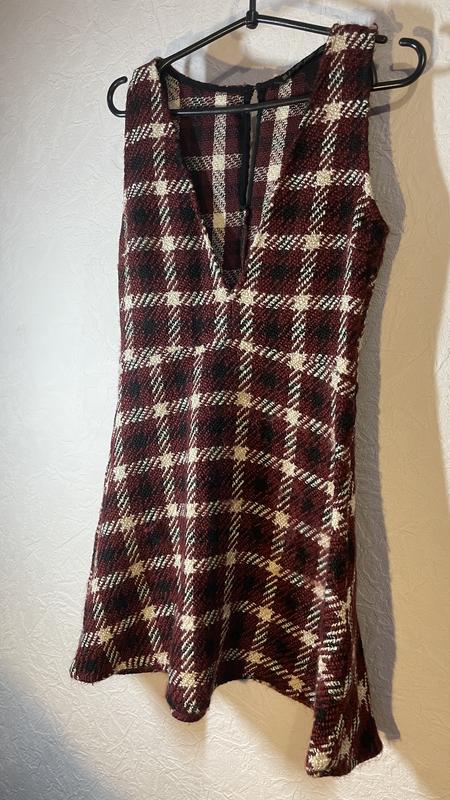Утепленный сарафанчик для повседневной жизни. Мягкий и приятный на ощупь, в клетку прикольную. Красиво надевать с черным лонгсливом или красным. В нем вы будете выглядеть удобно, комфортно и стильно. Сарафан где-то по колено. Подходит на размер S