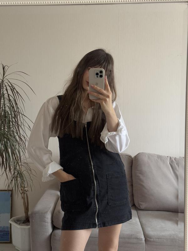 Продам черный джинсовый комбинезон. Средней плотности. Размер: 40. Длина: 78 см (разом со шлейками), по груди: 84 см, бедра: 102 см. Стан: идеальный.