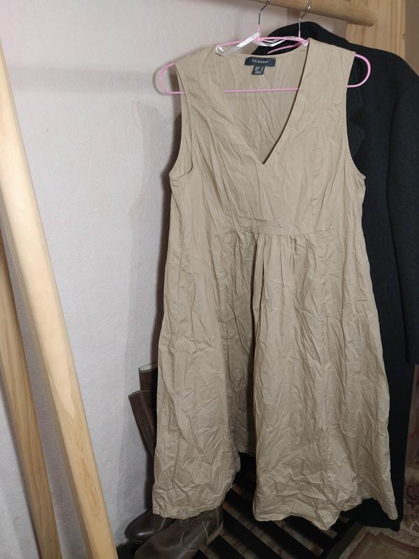Нюдовый хлопковый сарафан станет стильным решением в любое время года.