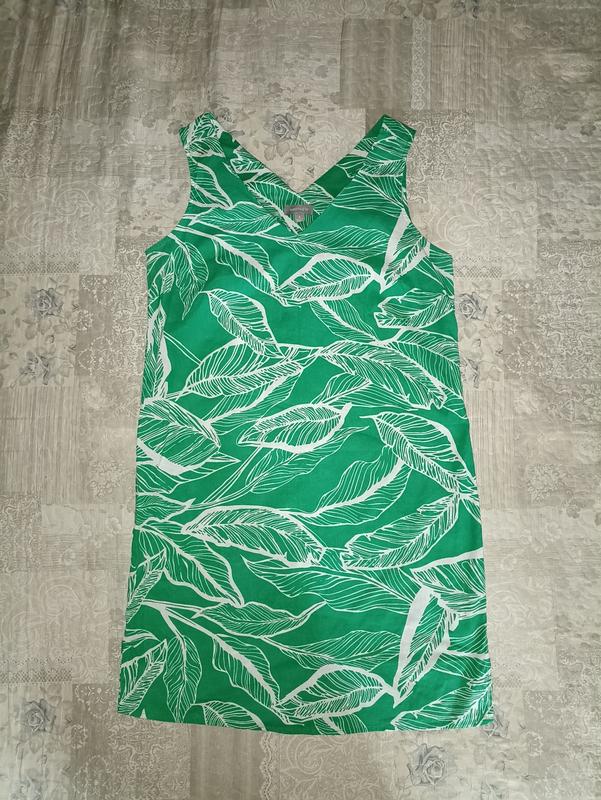 сарафан Suzanne Grae, Австралия, тканина льон-бавовна, зеленый, растительный принт, внизу по бокам распорки по 10см, размер 8, грудь 51см, бедра 53см, длина 91см, является нюанс-растянуто в районе распорки, но держится прочно