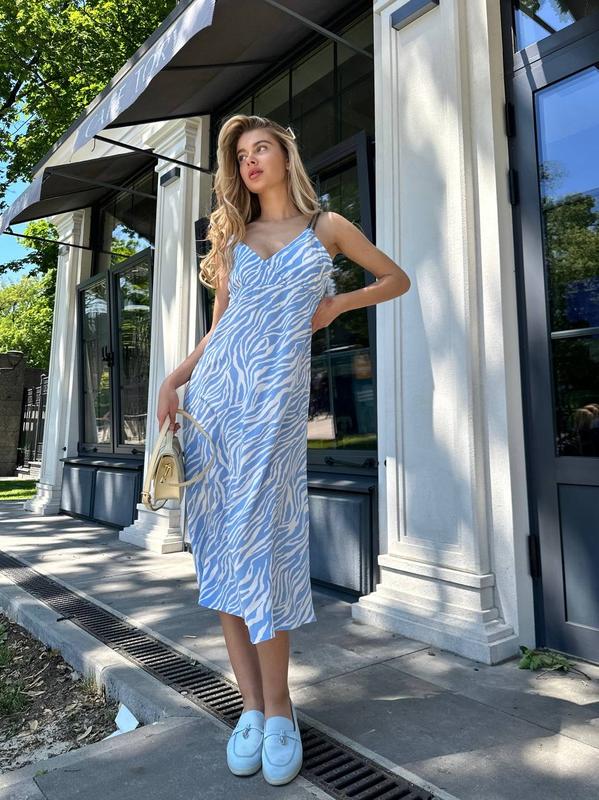Платье миди сарафан софт принт зебра на бретелях цепочках