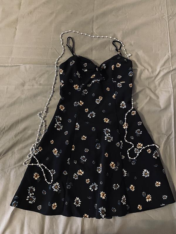 Продам красивое летнее платье,размер С, черное в цветочки. Платье на молнии