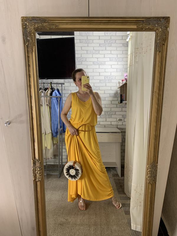 Платье на высокую пани, в новом состоянии, по виду не было в носке и стирке! Размер L По груди 49, бедра 64, длина 147 см