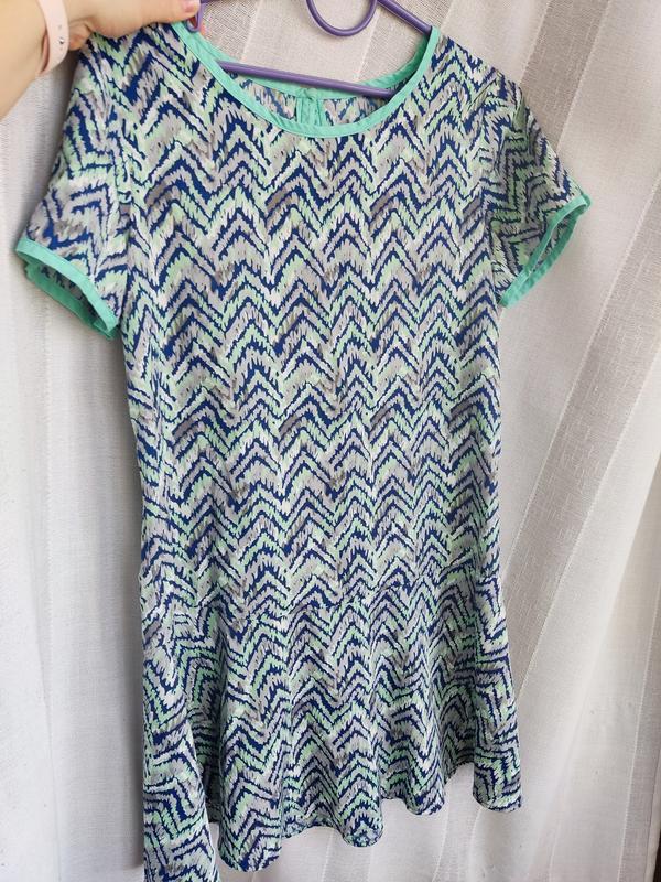 легкое летнее платье, по низу идет волан. состояние идеально без каких-либо дефектов. долж.-86 п.о.г.-48 идет по прямой.