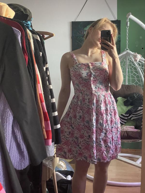 Сарафан очень классный, имеет молнию сбоку и пуговицы, ягрузил пуговицами потому что молния на шве заедает Одетая на 90/70/110 рост 170см 65% полиэстер 35% хлопок Размер М Смотрите другую мою одежду, разгружаем шкаф, если будете брать несколько - можем доложить о более низкой стоимости 💕✌🏻