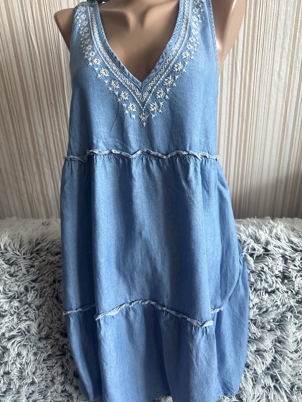 Легкий джинсовый сарафан с вишней р S