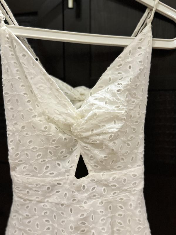 Белый летний сарафан, на завязках из недостатков следует пришить одну лямку