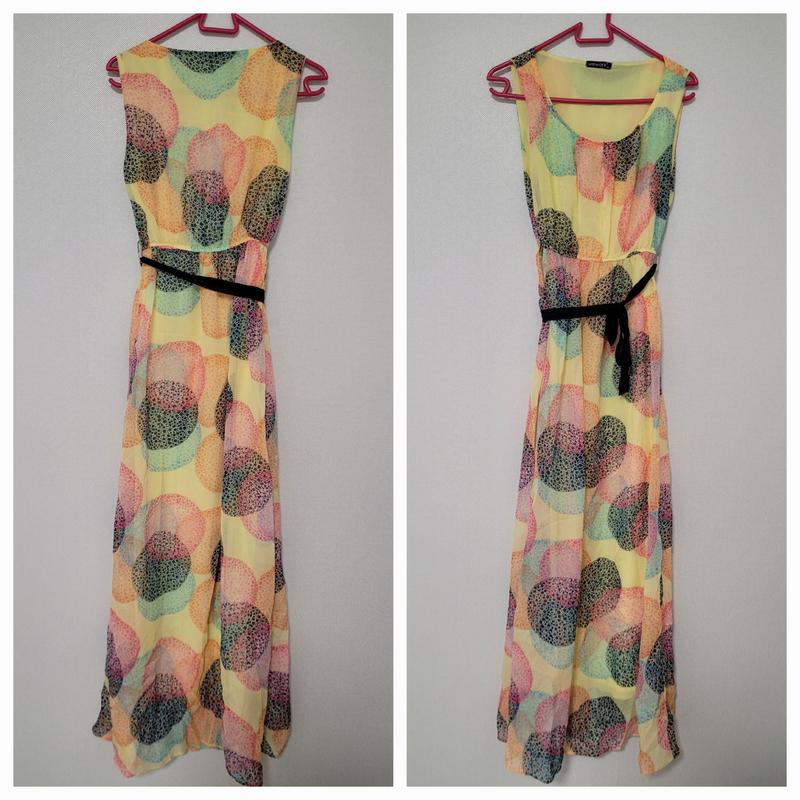 Летнее шифоновое длинное платье по наборке XL, однако идет на М-L, шифоновое, длинная ю, резинка на поясе. длина полная 146 см (длина юбки 108 см) пояс 28 см, тянется до 43 см пог 41 см, тянется до 52 см Без дефектов.