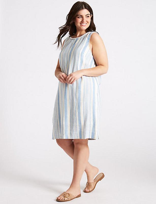 Коллекция m&s платье-туника в полоску из смесового льна curve код продукта: t528610e