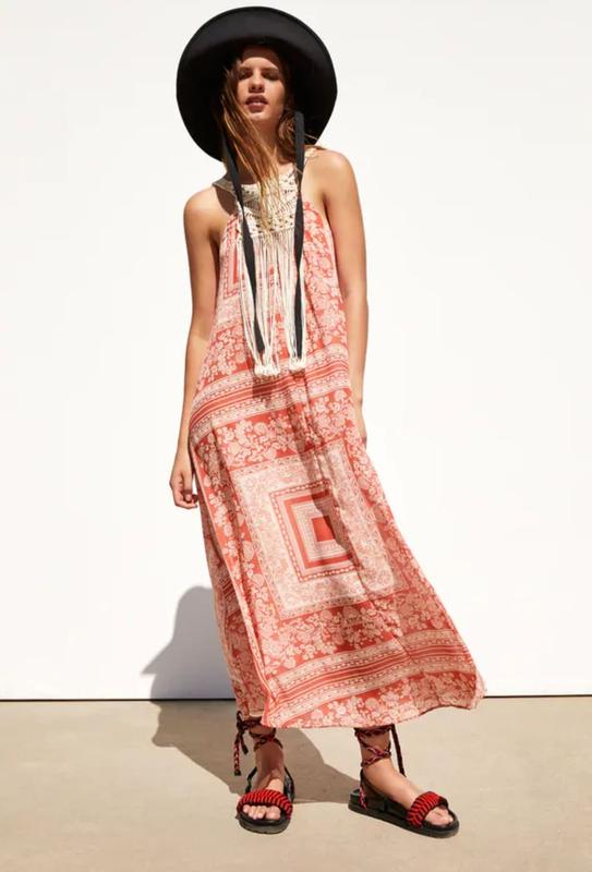 Сукня, сарафан міді в етно, бохо стилі в принт зі вставкою макраме zara