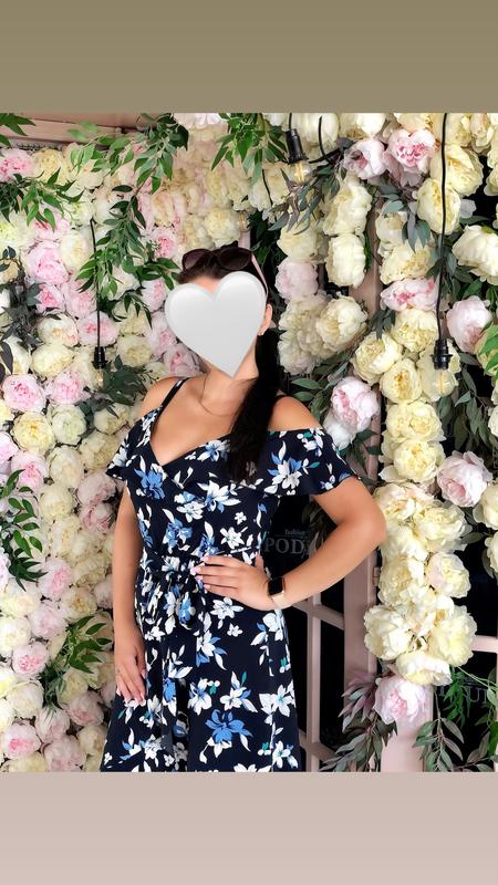 Платье темно-синего цвета с принтом цветов С пояском Стан - идеальный Длина по спине 122 см ПО груди 46 см Талия на резинке