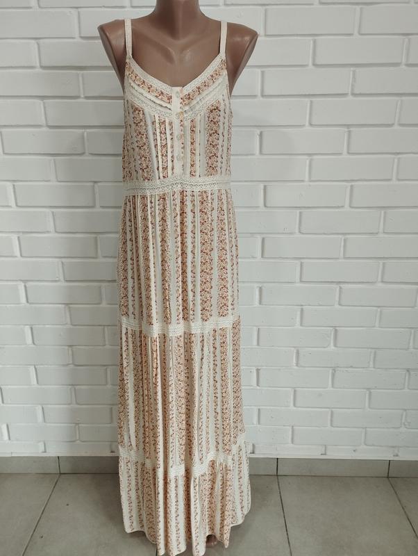 Очень легкий, нежный сарафан бренда TU. Идеальное состояние, без дефектов. Размер 14 (L-XL). Замеры: Общая длина по спине-120 см Полуохват груди - 46+ тянется Полуохват талии-44