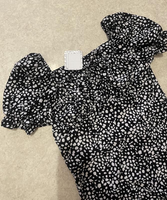 Новое с биркой, платье с небольшим разрезом внизу, красивый рукав волан, зону бюста можно регулировать под себя спереди, ткань легкая воздушная, принт как мелкий леопард, цвет насыщенный, размер 42-44, продаю новое так как не угадала с размером Крой платья как на последних фото