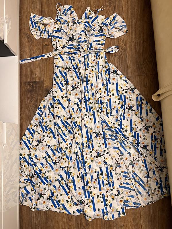 Женское платье-размер S/M. Ткань масло очень хорошо тянется, есть пояс, рукава двойные, есть разрез спереди. Стан - идеальный