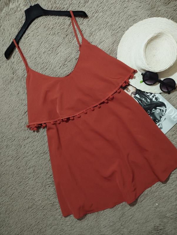 В идеальном состоянии. Красивый сарафан с бахромой. Тканина легка,не тягнеться. Размер 14/42/XL, но маломерит, смотрите по замерам Замеры (полуобхват): Груди 47 Талия 45 Бедра - свободно Длина с шлейками 78